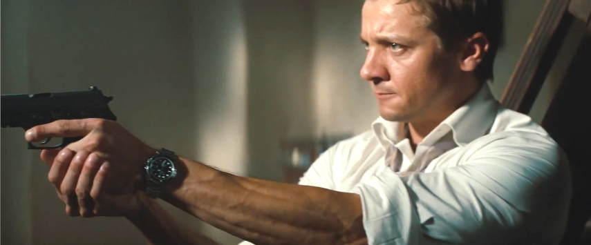 Не менее стильные часы украшали запястье Реннера во время исполнения роли загадочного аналитика Уильяма Брандта в фильме «Миссия невыполнима: Протокол Фантом». Поклонниками актера была замечена и по достоинству оценена классическая модель Rolex Submariner на стальном браслете с черным циферблатом и автоматическим механизмом с индикацией даты. Знаменитый корпус «устрица» диаметром 40 мм обладает водонепроницаемостью до 300 м. Именно такие часы идеально подходят Джереми не только для исполнения роли, но и для поддержания статуса одного из самых импозантных мужчин Голливуда.